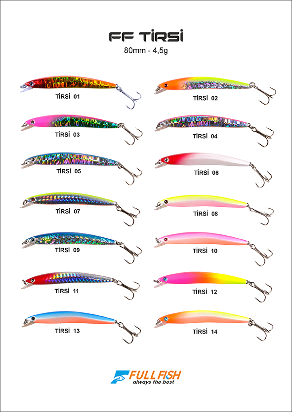 Sezonun en çok skor yapan sahtelerinden biri: FULL FISH TİRSİ Özellikle kurşun arkası avlarda gösterdiği üstün performansla Lüfer ve Palamut peşindeki avcıların vazgeçilmezi haline geldi.